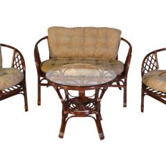 Комплект Багама с диваном, подушки светлые обычные шенил (Молочный шоколад) стол круглый | фото