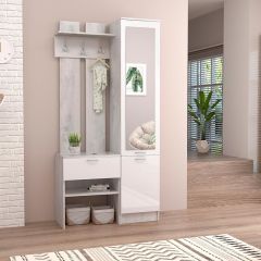 Прихожая Иннэс-3 Универсальная (ЛДСП бетон светлый/белый глянец)