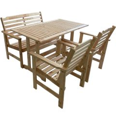 Стильный и удобный, прочный и долговечный комплект для отдыха из дерева.Гарнитур из 4 предметов для семейного отдыха. Комфортно разместит 4 человека. Гарнитур включает стол высотой 75 см со столешницей 120х70 см, 2-местн.софу Стэнхамн и два кресла Стэнхамн. При длине 1,2 м стол вполне удобно разместит 6 человек. Два продольных распора не позволяют столу раскачиваться. Наклон сиденья и спинки кресел и софы дает возможность долгого отдыха без соскальзывания с сиденья. Вы можете дополнить набор креслами Стэнхамн или софами Стэнхамн.