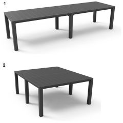Раскладной стол Джули идеально подходит для особых случаев, поскольку может из небольшого столика на 6 персон превратится в большой прямоугольный или квадратный стол на 8-10 персон. Джули заполнит большие пространства, такие как сад или терраса, позволяя организовать семейную вечеринку или встречу в большом кругу друзей. Продукт отличается высокой прочностью и устойчивостью к воздействию погодных условий и УФ-излучения. Очень прост в сборке и поддержании чистоты.